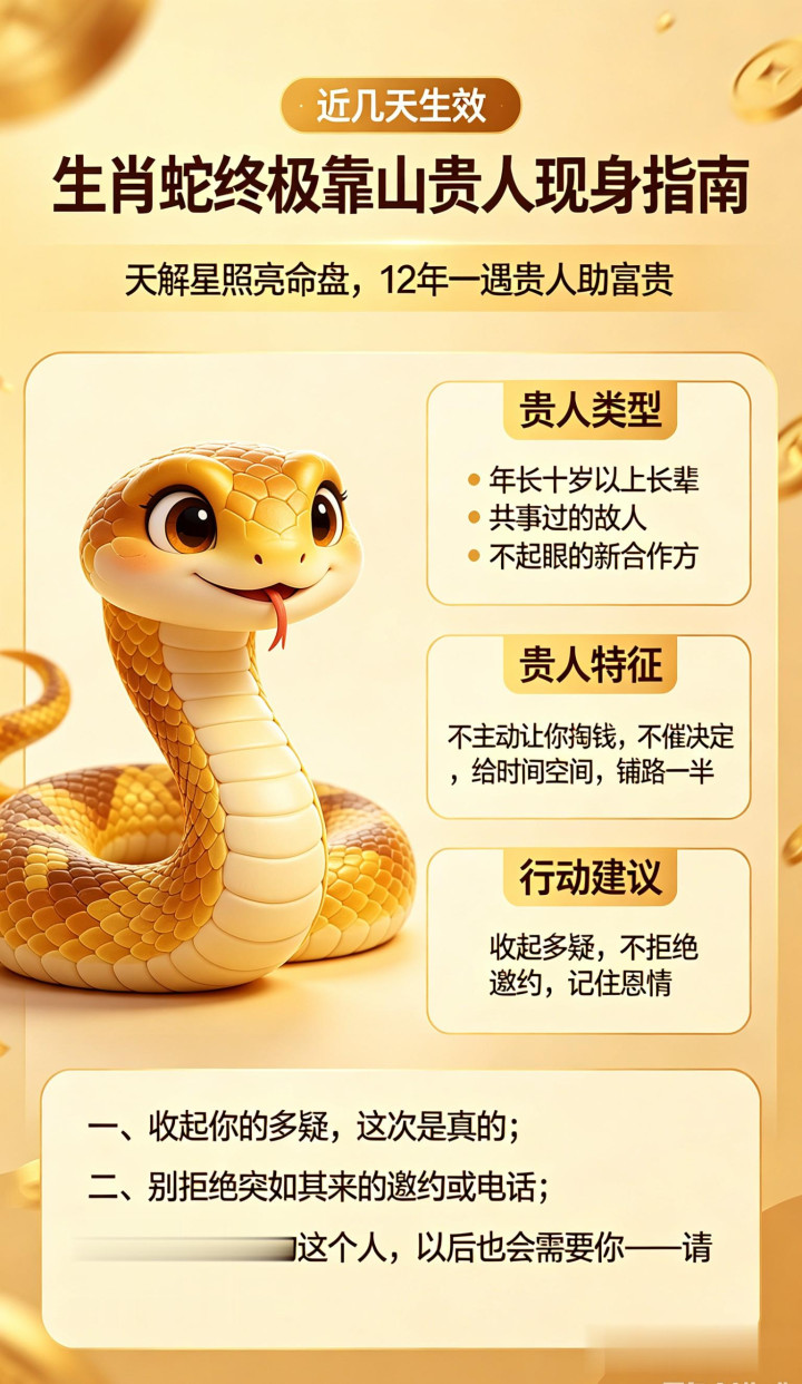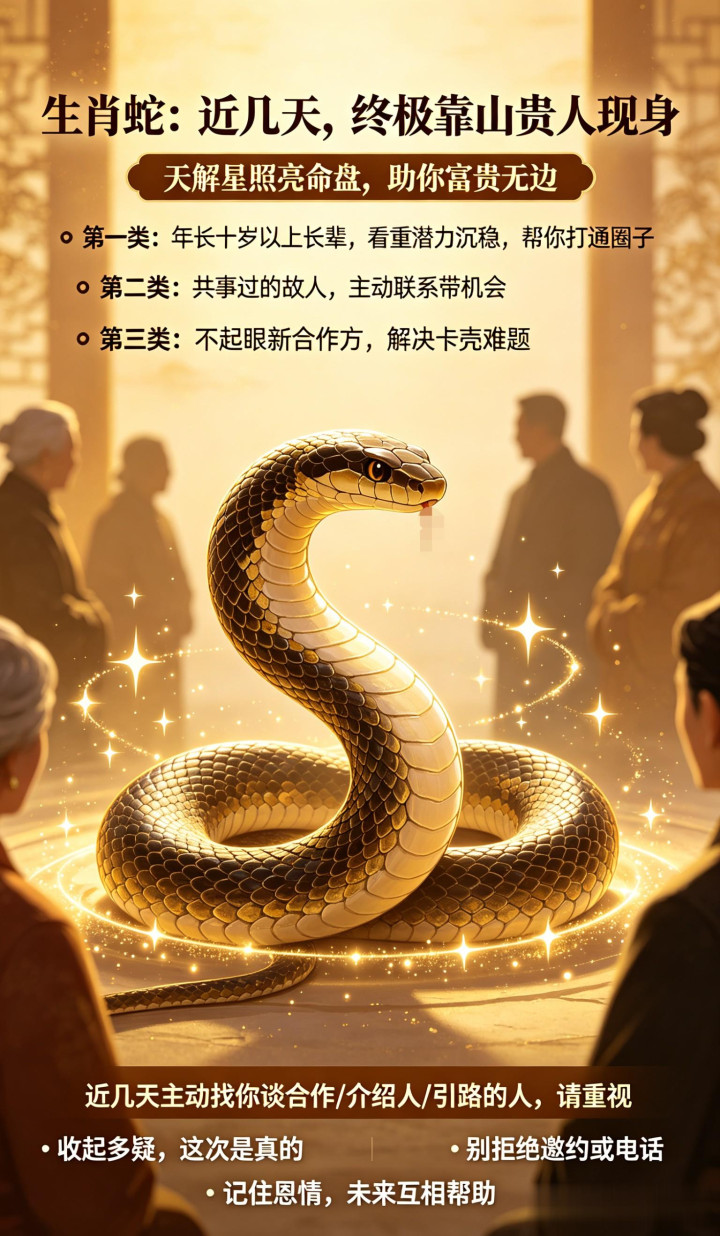 属蛇人请记住:近几天,凡是主动来找你谈“合作”“介绍人”“引路”的人,请格外重视。哪怕你第一反应是怀疑,也要先坐下来听他把话说完。